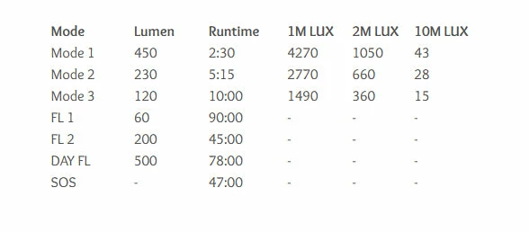 3 steady modes, 3 flashing modes, SOS modes.