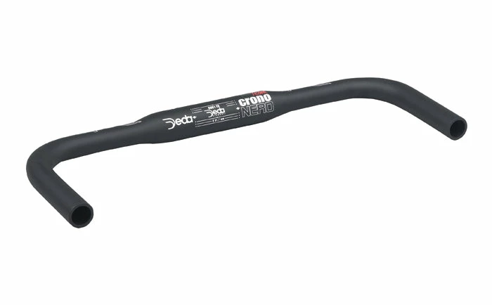 Deda Crononero Team – Aero Time Trial Handlebars. Designed to be used as a base bar with aero or time trial extensions or just on their own to give a different position. Made from Lightweight hydroshaped 6061 alloy To fit OVERSIZE 31.7mm stems will work in 31.8mm also. Flat aero top section Internal brake cable routing Width: 40cm, 42cm, 44cm, 46cm (measured outer to outer) Weight: approx 230grams Colour: Matt Black