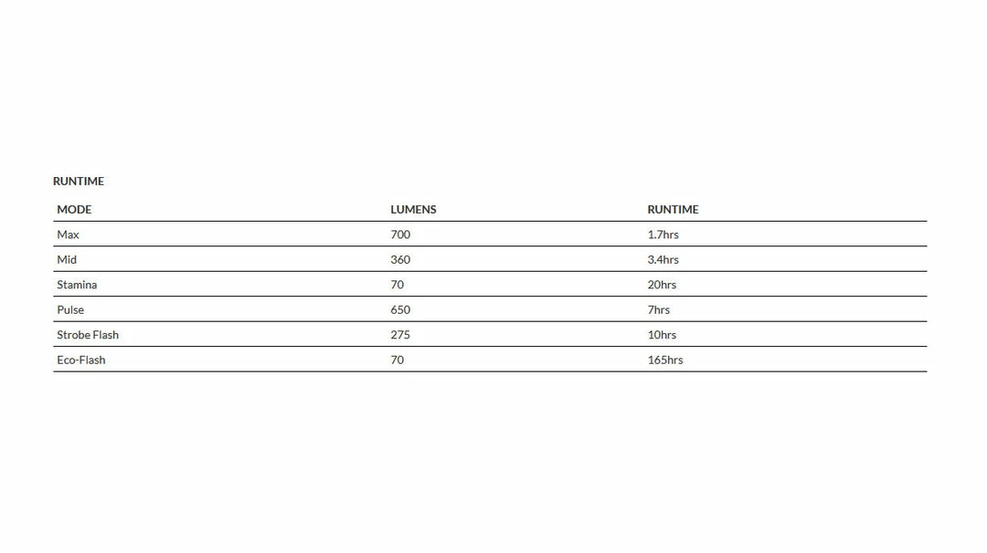 WIDE BEAM & CUSTOMISABLE MODES – PWR Road outputs a max 700 lumens, and can run for up to 195 hours on Eco Flash Mode. Its elliptical beam gives broader, bright road coverage. It comes with 6 pre-program d modes, and you can program the light to suit your needs with Modemaker. You can control brightness, adjust runtimes and add new light modes.